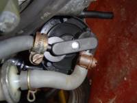 Next day I fitted the HUCO 133000 pump using the original rubber holder. I oriented the pump to ensure the legend 'TOP' was indeed at the top and moved the adjustable inlet and outlet stubs accordingly. Although the 8mm pump stubs were smaller than the original 10mm tubing two of Commander Robinsons' excellent jubilee clips took up the difference. This was aided by the necessity of cutting back a small amount of original pipe giving the tubes fresh un-distended ends.